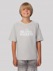 Этот домашний комплект для мальчиков — идеальное сочетание удобства, практичности и мягкости натуральных тканей. Он включает футболку и прямые брюки, выполненные из хлопка, который обеспечивает хорошую воздухопроницаемость и мягкость, особенно важные для активных детей. Футболка имеет классический круглый вырез с усиленной обтачкой из рибаны — она помогает сохранять форму даже после многократных стирок. Короткие рукава и низ футболки обработаны швом вподгибку, что придает изделию аккуратный и законченный вид. Брюки дополнены эластичным поясом, который мягко фиксируется на талии, не создавая дискомфорта. Прямой крой обеспечивает свободу движений, а застроченный низ делает их устойчивыми к износу. Комплект не только хорошо сидит, но и легко надевается — отличный выбор для дома, игр, сна или отдыха. Простота исполнения и качественные детали делают его универсальным вариантом на каждый день.