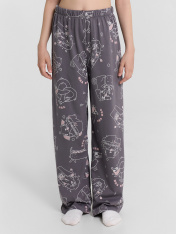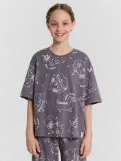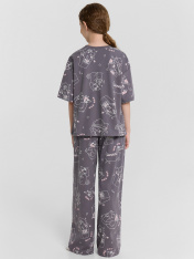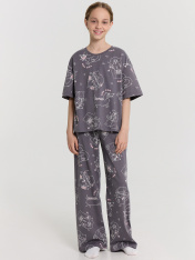 Футболка свободного силуэта. Горловина круглой формы, обтачка из рибаны. Рукава втачные свободные, линия плеча слегка спущена. Низ рукавов и футболки в подгибку._x000D_ Брюки свободного силуэта. Пояс цельнокроеный внутри с резиной 30RV. Низ брюк в подгибку.
