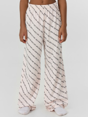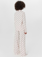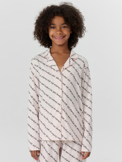 Комплект состоит из рубашки и брюк. Рубашка прямого силуэта, с отложным воротником, спинка цельнокроеная._x000D_ Плечо слегка спущено. Рукав втачной, одношовный, длинный. Центральная застежка на пуговицы d= 10 mm._x000D_ Брюки слегка расширены к низу. Пояс цельнокроеный с эластичной тесьмой внутри Rv35._x000D_ Низ застрочен швом в подгибку.
