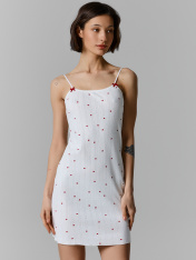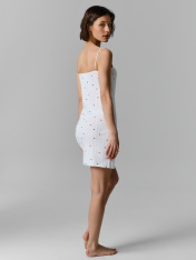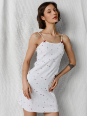 Сорочка полуприлегающего силуэта. Длина мини. Верхний край изделия обработан мягкой тесьмой с зубом 7 мм KTE7-7, devsel 1532W. Бретели 5мм спагетти SWE8-5, devsel 997W с регуляторами 6 мм. Низ изделия обработан микрооверлоком._x000D_