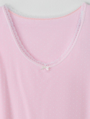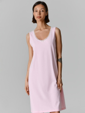 Ночная сорочка женская прилегающего силуэта — это воплощение нежности и комфорта для вашего отдыха. Модель длиной до колен мягко облегает фигуру, подчеркивая изящество, без стеснения движений. V-образный вырез горловины, окантованный эластичным кружевом, добавляет образу элегантности, а проймы, обработанные бейками из основного полотна, гарантируют идеальную посадку.<br>_x000D_ <br>_x000D_ Аккуратная обработка низа обеспечивает долговечность и опрятный вид даже после множества стирок. Если вы ищете женскуюночную сорочку, которая сочетает легкость материалов, продуманный крой и лаконичный дизайн, эта модель станет прекрасным выбором. Ночная сорочка из дышащей ткани подарит вам ощущение свежести и уюта, делая ее идеальной для крепкого сна и расслабления.<br>_x000D_ <br>_x000D_ Универсальный фасон подойдет для любого времени года: летом она подарит прохладу, а зимой согреет в сочетании с уютным халатом. Это не просто предмет гардероба, а забота о вашем отдыхе и настроении. _x000D_
