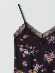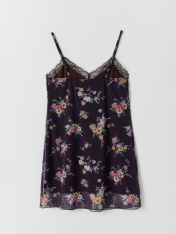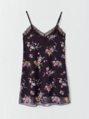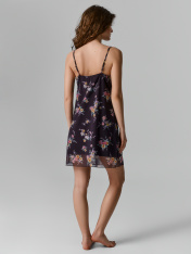 Сорочка А-силуэта короткая, на тонких бретелях. Горловина V-образной формы. По верхнему срезу переда отделка из кружева (LP124-6.5 A10467-6.5 правая, LL124-6.5 A10467-6.5 левая, 85% полиамид; 15% эластан). Бретели выполнены из основного полотна, с регулировкой на кольца и регуляторы MPW808 (пластик 8мм). В бретели и по верхнему срезу спинки проложена эластичная тесьма (жилка тканая 6мм WT4-6 Arteks E7112). Сорочка на подкладке из кулирки. Нижний срез подкладки обработан швом вподгибку, нижнийсрез сорочки обработан