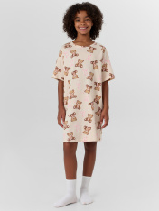 Милая ночная сорочка для девочек из трикотажной кулирки станет любимым элементом вашего детского гардероба. Выполненная из 100% натурального хлопка, она обеспечивает комфорт и мягкость на протяжении всей ночи. Прямой силуэт и короткие рукава создаютудобный и стильный образ, а круглая горловина добавляет классический акцент. Эта уютная модель отлично пропускает воздух, позволяя коже дышать и поддерживая оптимальную температуру тела. Идеальный выбор для спокойного и комфортного сна! Рекомендуем приобрести эту сорочку для вашего ребёнка и обеспечить ему сладкие сны и радостные утренние пробуждения. Сочетание качества и стиля сделает эту сорочку незаменимой в гардеробе вашего ребёнка.