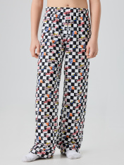 Брюки домашние для мальчиков, длинные и прямые. Детали переда и сидения соеденены боковым швом. Пояс цельнокроеный с эластичной тесьмой внутри (внутрення резина Rv30), ширина 30 мм._x000D_ Низ обработан на 2-х игольной плоскошовной машине швом в подгибку. _x000D_