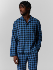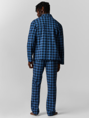 Комплект состоит из сорочки верхней и брюк._x000D_ Комплект выполнен из трикотажного полотна кулирки._x000D_ Сорочка прямого силуэта, свободная._x000D_ Рукава втачные длинные, линия плеча слегка спущена. _x000D_ Горловина V-образной формы с отложным воротником. _x000D_ Низ изделия и низ рукавов застрочен швом в подгибку._x000D_ Брюки прямые, свободные. Пояс цельнокроеный с эластичной тесьмой внутри. _x000D_ В боковых швах обработаны карманы._x000D_ Низ изделия застрочен швом в подгибку._x000D_