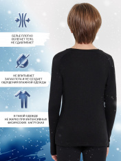 Лонгслив термо для мальчика - особая модель для того, чтобы ребенок всегда был в тепле. Изготовлен из термоматериала, произведенного по австрийской технологии. Полые волокна полиэстера Trevira изолируют холод и сохраняют тепло, быстро реагируют на изменения температуры тела, предотвращая перегрев и переохлаждение. Вискоза Viloft эффективно впитывает и отводит влагу, а также придаёт нитям мягкость и прочность. Все материалы безопасны для детей, не вызывают аллергию, позволяют коже дышать и надежно защищают ребенка от холода. Джемпер бархатистый, тактильно приятный, облегает тело и не заметен под повседневной одеждой. Модель не требует особого ухода, при этом долговечна и практична. Термолонгслив хорошо тянется и не стесняет движений, это идеальный вариант спортивной термо одежды для занятий туризмом, хоккеем, фигурным катанием, горными лыжами или сноубордом. Комфорт от +5 до -20 градусов