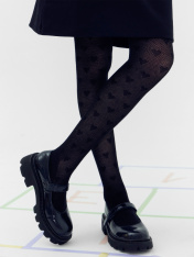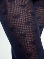 Рис.1660 Гладкие колготки с рисунком в виде сердечек сетки по всей колготке.