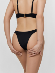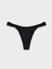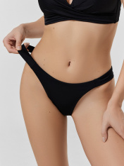 Трусы купальные бразилиана со средней линией талии из гладкой микрофибры на подкладке, с протяжками из полотна по бокам. Перед и спинка цельные. Перед и протяжки обтачные подкладкой по всем срезам с прокладыванием эл резиновой тесьмы 7 мм внутри. Верхний срез задней детали обработан швом вподгибку с эл резиновой тесьмой 7мм внутри, нижние срезы обтачаны подкладкой с эластичной резиновой тесьмой 7 мм внутри.