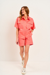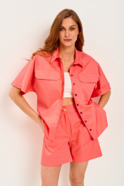 Блузка женская прямого силуэта с центральной потайной застежкой на петли пуговицы, со спущенным рукавом .На детали переда блузки обработан накладной карман с клапаном, потайная застежка на петли-пуговицы. В боковых швах работаны пазрезы. Низ изделия ассиметричный.