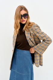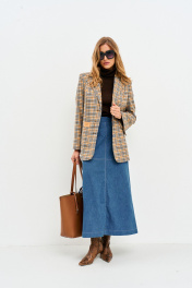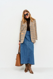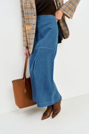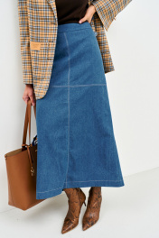 Юбка женская прямого силуэта, расширеннаф к низу, с притачным поясом и застежкой на тесьму "молния"в среднем шве заднего полотнища. Переднее полотнище разрезное из 4-х частей.