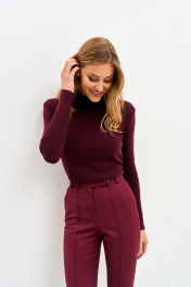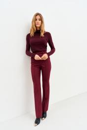 Брюки женские зауженные к низу. На передних половинках брюк обработаны боковые карманы в швах.Застежка на тесьму молния с потайной пуговицей и брючным крючком. Пояс брюк обрабатывается корсажной тесьмой. По поясу настрочены шлевки для ремня. По передней половинке застрочены канты . Задние половинки с вытачками и заутюжеными кантами.длина изделия 110см,обхват талии 66-70-74-78-82-86-90,обхват бедер 92-96-100-104-108-112-116