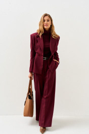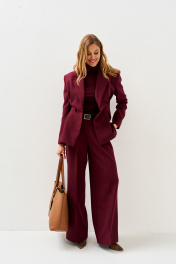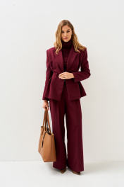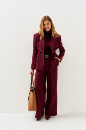 Брюки женские свободного кроя, расширенные к низу. На передних половинках брюк обработаны боковые карманы в швах.Застежка на тесьму молния с потайной пуговицей и брючным крючком. Пояс брюк обрабатывается корсажной тесьмой. По поясу настрочены шлевки для ремня. По передней половинке заложены две складки, одна из которых переходит в застроченный кант . Задние половинки с вытачками и заутюжеными кантами. длина изделия 112см ,обьем по бедрам 102-106-110-114-118-122-126, обьем талии 66-70-74-78-82-86-90
