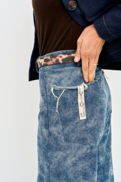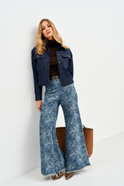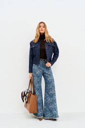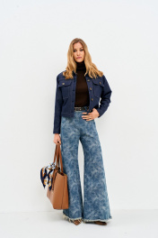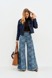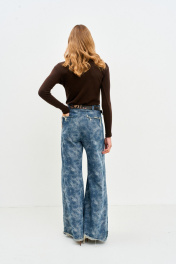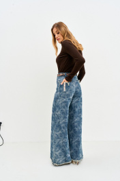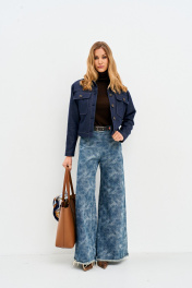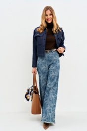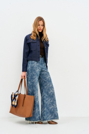 Брюки женские прямого силуэта расширеные к низу с притачным поясом. Застежка на тесьму молния в боковом шве. На задних половинках обработаны Накладные карманы.