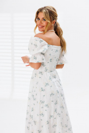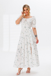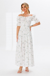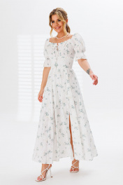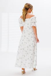 Платье из хлопка с отрезным лифом и драпировками для повседневного стиля Marshop M110-3К белый-зеленый