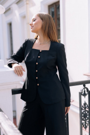 Супер удобный костюм для работы или школы! С первого взгляда восхищает своим уникальным дизайном: квадратный вырез, застежка на золотые пуговицы создают потрясающий модный воздушный образ! параметры готового изделия длина жакета 62-64 см длина рукава 62-63 см длина брюк 111 см 42 размер= ОГ 87 см, ОТ 70 см, ОБ 94 см 44 размер= ОГ 91 см, ОТ 74 см, ОБ 98 см 46 размер= ОГ 95 см, ОТ 78 см, ОБ 102 см 48 размер= ОГ100 см, ОТ 82 см ,ОБ 106 см 50 размер= ОГ 104 см, ОТ 86 см, ОБ 110 см 52 размер= ОГ 108 см, ОТ90 см, ОБ 114 см.