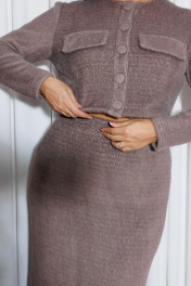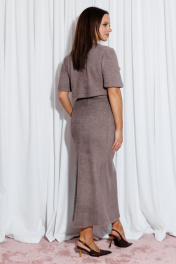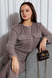 "Юбка миди прямого силуэта с цельнокроеной обтачкой на резинке. Низ юбки обработан в подгибку на машине.Жакет прямого силуэта умеренного объема, с центральной застежкой на планке с прорезными петлями и пуговицы. В верхней части переда накладные клапаны. Рукав одношовный, . Изделие без подкладки. . Изделие укороченное до уровня талии. На фото 46 размер Длина топа по спинке 40 см, длина рукава 58-59 см . Длина юбки 93 см"