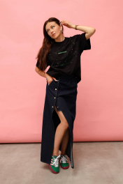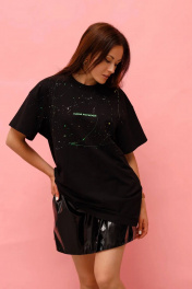 Этот уникальный вещь в гардеробе каждой девушки - футболка Овер с ручной росписью и красивой надписью "тихая роскошь" в салатовых оттенках - станет ярким акцентом вашего гардероба. Эта футболка не просто предмет одежды, она - настоящее произведение искусства. Каждая деталь создана с заботой и любовью, что делает ее по-настоящему уникальной. Независимо от того, где и с чем вы ее носите, эта футболка добавит вам уверенности и стиля. Погрузитесь в мир тихой роскоши ! Составить полный образ от бренда MASHA SKORINA можно, добавив стильную лаковую мини-юбку, юбку из эко-кожи или джинсовую юбку макси бренда