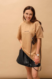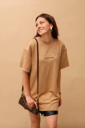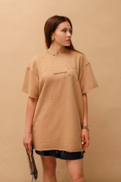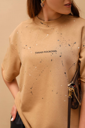 Футболка овер из футера с ручной росписью и текстовой надписью MASHA SKORINA MS-T-8-003