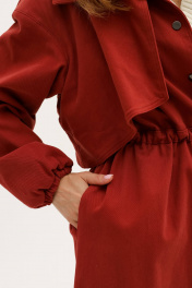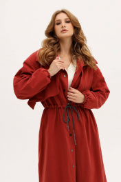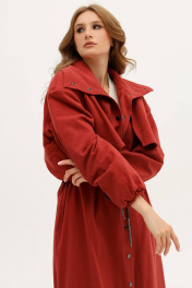 Стильный тренч кирпичного глубокого цвета бренда MASHA SKORINA из качественного джинса с велюровым эффектом станет отличным дополнением к вашему гардеробу. Его плавная линия кокетки придает изысканность, а вискозная подкладка качества люкс обеспечивает комфорт и удобство. Глубокие боковые карманы в швах станут ненавязчивыми помощниками, а дизайнерский шнурок ручной работы добавляет элегантности. Застегивается Тренчкот на кнопках в цвете оксид, которые несомненно придадут изюминку вашему образу. Этот тренч будет прекрасно смотреться как с платьем, юбкой, шортами, так и с джинсами, брюками, подчеркивая ваш неповторимый стиль
