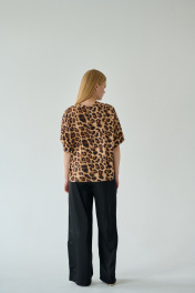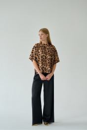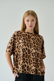 Блуза оверсайз с разрезами, шелковистая ткань, универсальный стиль Мастер Мод 803ас леопард_рыжий