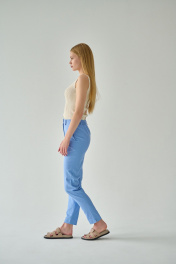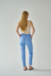 Голубые зауженные брюки из хлопкового джинса Мастер Мод 835дс голубой