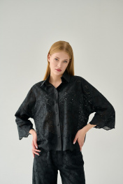 Черная хлопковая блузка с кружевом и V-вырезом Мастер Мод 853с чёрный