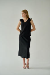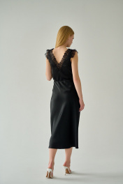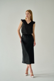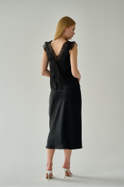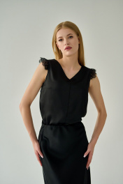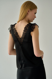 Черная шелковистая блузка с кружевом и V-образным вырезом Мастер Мод 854ас чёрный
