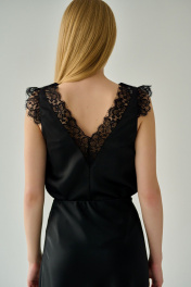 Шелковистая блузка в актуальном сейчас бельевом стиле навсегда решит проблему, когда нечего надеть. Её универсальный прямой крой подарит вам комфорт в ежедневной носке, при этом подчеркнув все достоинства фигуры. V-образный вырез по переду и спинке визуально удлинят силуэт. Изюминка блузки - обрамление кружевом выреза на спинке, что делает блузку невероятно женственной. Также кружева выполняют функцию рукава-крылышка. Романтичная легкость кружевных элементов разбавит повседневный образ и подарит возможность надеть блузку на любое торжество, где, несомненно, притянет все взгляды. Вместе с этим ткань, которая не мнется, не выцветает и не пилингуется обеспечит изностойкость, лёгкость и удобство. Рекомендации по уходу - на этикетке. Размеры соответствуют стандартной размерной сетке. Дополнительные замеры: Длина изделия 57см.