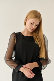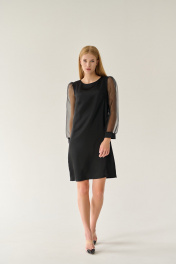 Нарядное черное платье с длинными органзовыми рукавами Мастер Мод 864ас чёрный