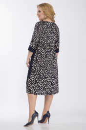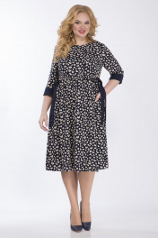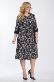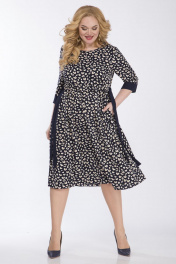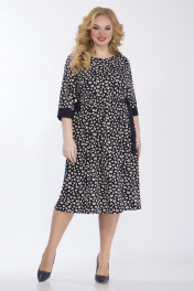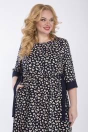 Платье женское, свободного покроя из костюмно-плательной ткани. Платья с отрезным лифом и круглым вырезом горловины. По переду и спинки на уровне линии талии выставлена рюша с пояском из контрастной ткани.Рукав втачной, одношовный на манжете из контрастной ткани. Длина платья 110см, длина рукава 41,5см, ширина рукава на уровне глубины проймы 52-20см, 54-20,5см, 56-21см, 58-21,5см. Реальные замеры изделия 52 ог-110см, от по линии подреза 108см, об-158см, 54 ог-114см, от по линии подреза 112см, об-162см, 56 ог-118см, от по линии подреза116см, об-166см, 58 ог-122см, от по линии подреза-120см, об-170см.