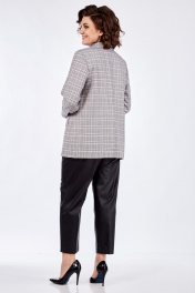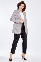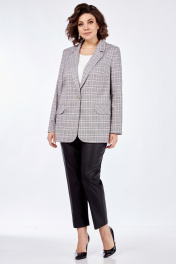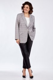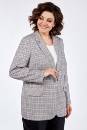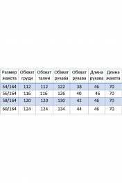 Жакет прямого силуэта, на подкладке с центральной застежкой на петли-пуговицы. По переду на уровне талии выполнены прорезные карманы с листочкой. Рукав втачной, двухшовный с цельнокроеной манжетой.