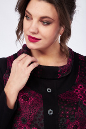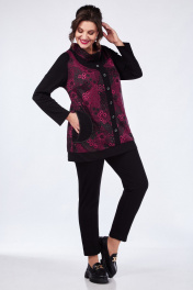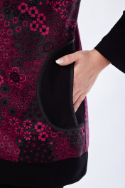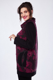 Блузон женский прямого силуэта, без застежки. Скомбинирован из трикотажа дизайн и трикотажа однотон. Полочка и спинка из трикотажа дизайн,рукава, планка, отд.деталь горловины, накладные карманы из однотона. По планке 6 декоративных пуговиц. Швы притачивания планки и отд.детали горловины отстрочены на распошивалке. Накладные карманы из двух частей, срезы карманов окантованы. Воротник-хомут. Низ рукава подшит на распошивалке. Низ блузона на притачном поясе. Длина изделия по спинке 58-62 74 см, 64-68 76 см, длина рукава 59 см, длина рукава 61 см, ширина рукава на уровне глубины 58 ог-118 см, от-122 см, об-124 см, 60 ог-122 см, от-126 см, об-128 см, 62 ог-126 см, от-130 см, об-130 см, 64 ог-132 см, от-136 см, об-138 см, 66 ог-136 см, от-140 см, об-142 см, 68 ог-140 см, от-144 см, об-146 см.