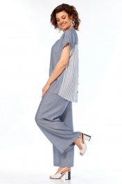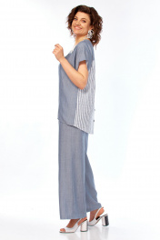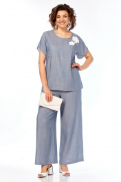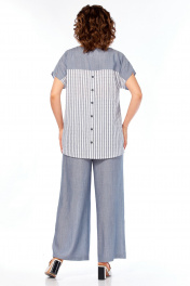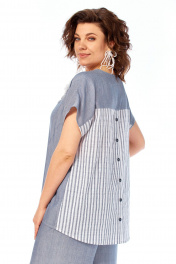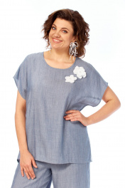 Женская блуза прямого силуэта. Горловина круглая, обработана окантовкой. Полочка с рельефами, выходящими из проймы. Спинка с кокеткой из основной ткани. Спинка немного длиннее переда. Рукав цельнокроеный, короткий. Застежка по спинке на петли-пуговицы. Блуза без подкладки и плечевых накладок. Ткань не тянется.