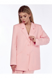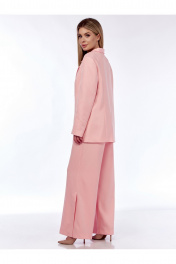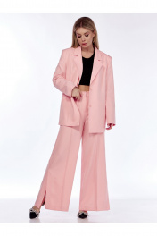 Жакет удлиненный, прямого силуэта. Рукав втачной двухшовный. По переду прорезные карманы с листочками. Застежка жакета на 2 петли, пуговицы. Жакет на подкладке. Брюки расширены к низу, с открытыми шлицами по боковым швам. Стрелки по переду брюк с отстрочкой на 0,2см.