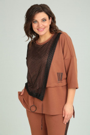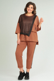 Комплект из брюк-кюлот и джемпера с сеткой и принтом Michel chic 1329 рыжий
