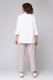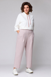 Комфортный и практичный повседневный женский комплект в стиле "спорт-шик" прекрасно будет сочитаться с другими элементами вашей одежды. Данный комплект выполнен из двух видов костюмного трикотажа: джемпер — однотонный молочный , брюки - из цветного мягкого на ощупь трикотажа имитация твида. Джемпер длиной по бедра ,со шнуровкой-стяжкой по низу, свободного облегания, с покроем рукава реглан, длиной 3/4. Перед джемпера цельный с двумя прорезными карманами и широкими листочками, вырез горловины круглый с воротником стойкой ,с небольшим запахом по переду и декаративной шнуровкой. Брюки бананы,на притачном поясе с резинкой, длинные, есть два кармана по переду в боковых. Длина джемпера по спинке 68 см, длина рукава от горловины 54 см. Длина брюк по боковому шву 102 см, по шаговому 74 см. Изделие подойдет на рост 170 см.