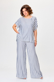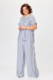 Летний комплект блузки и брюк из легкого текстиля Michel chic 1384 белый,синий,полоска