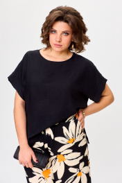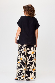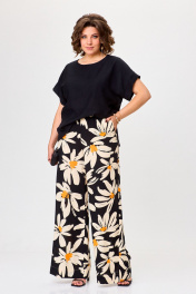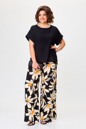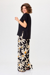 Бежевый и черный комплект брюки и блуза из вискозы Michel chic 1384 черный,ромашка