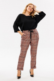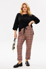 Удобный и универсальный женский брючный комплект. Данный комплект отличный вариант для повседневной носки. Изделие состоит из блузы и брюк. Блуза свободного кроя выполнена из шелковистой блузочной ткани. Перед и спинка цельные, вырез горловины круглый на окантовке, спинка удлиненная. Плечи спущены, рукав втачной 3/4 одношовный с широкой подгибкой по низу. Низ блузы также с широкой подгибкой и отделочной строчкой, имеются размеры по бокам, благодаря которым блузу с легкостью можно носить как навыпуск, так и заправленной. Для создания интересного образа к комплекту прилагается съемный галстук, застегивающийся на петлю-пуговицу. Брюки свободного кроя, длина 7/8, пояс притачной на резинке и шнуровкой люверсами, в боковых швах карманы. Брюки слегка заужены к низу с цельнокроеной манжетой. С данным комплектом можно смело создавать стильные образы как вместе, так и по отдельности. Длина блузы по спинке 67 см, длина рукава 53 см. Длина брюк по боковому шву 99 см, по шаговому — 69 см. Изделие подойдет на рост 170 см.