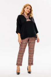 Комплект брюк и блузы из вискозы с съемным галстуком Michel chic 1391 бордо,черный