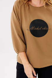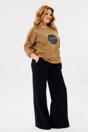 Брючный комплект водолаз из трикотажа с легким клешем Michel chic 1400 песок,черный