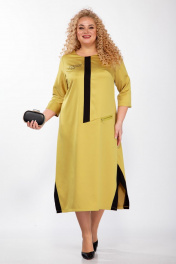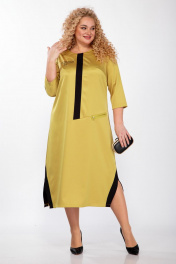Демисезонное платье из текстиля с принтом и разрезами Michel chic 2073 горчица