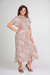 Платье рубашечного типа, свободного кроя - выполнено из натуральной вискозной ткани. Универсальность кроя и натуральная ткань сделают его любимым изделием Вашего гардероба в наступающем сезоне. По переду сверху застегивается на пуговицы, снизу сбоку разрез, по спинке длиннее. Рукав короткий цельнокроеный приспущенный на отложенной манжете. Благодаря встречной складке на спинке имеет небольшое клешение. По желанию фиксируется поясом из основной ткани, который идет в комплекте. Длина изделия по спинке от горловины 130 (+/-1) см. Изделие подойдет на рост 170 см.