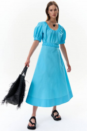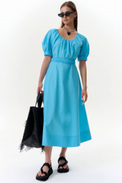 Платье А-силуэта из текстиля с поясом-резинкой на каждый день MilMil 1089L лазурь