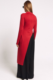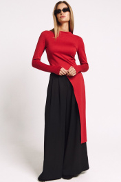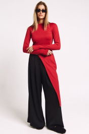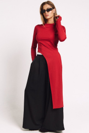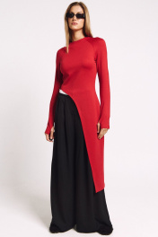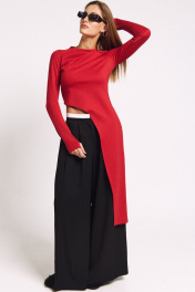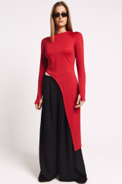 Лонгслив асимметричный, с удлиненной левой стороной. Рукав удлиненный с разрезом бля большого пальца.Прилегающий силуэт, сзади - потайная молния в цвет изделия.