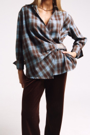 Рубашка из мягкой хлопковой фланели с асимметричной застежкой на "липучке", и декоративными складками. Свободный силуэт. Два универсальных размера - S (соответствует 42-44-46), L (соответствует 48-50-52)