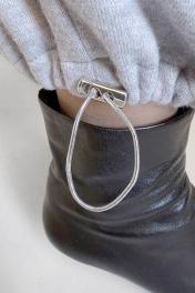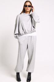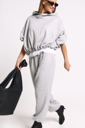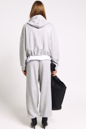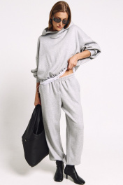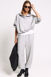Джоггеры из мягкого трикотажа, в классическом сером. Джоггеры умеренного объема. По низу ширина регулируется металлизированной резинкой и фиксаторами. Два универсальных размера - S (соответствует 42-44-46), L (соответствует 48-50-52)