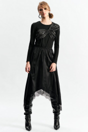 Юбка с резинкой по талии А-силуэта и фигурной линией низа отделанной французским кружевом