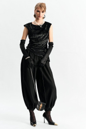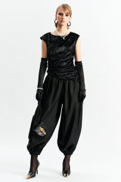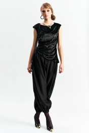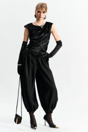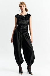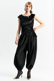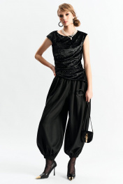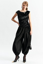 Брюки-"алладины", самый актуальный крой сезона. Пояс на резинке, низ брюк на резинке. Материал - смесовая вискоза с красивым изящным блеском. Два универсальных размера - S (соответствует 42-44-46) и L (48-50-52)