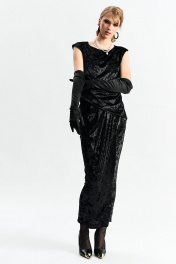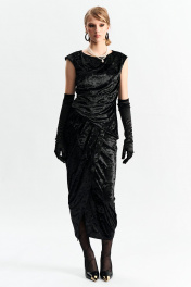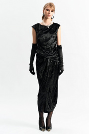 Юбка длины "миди" из фактурного бархата на запАх. По переду в поясе заложены конструктивные складки.